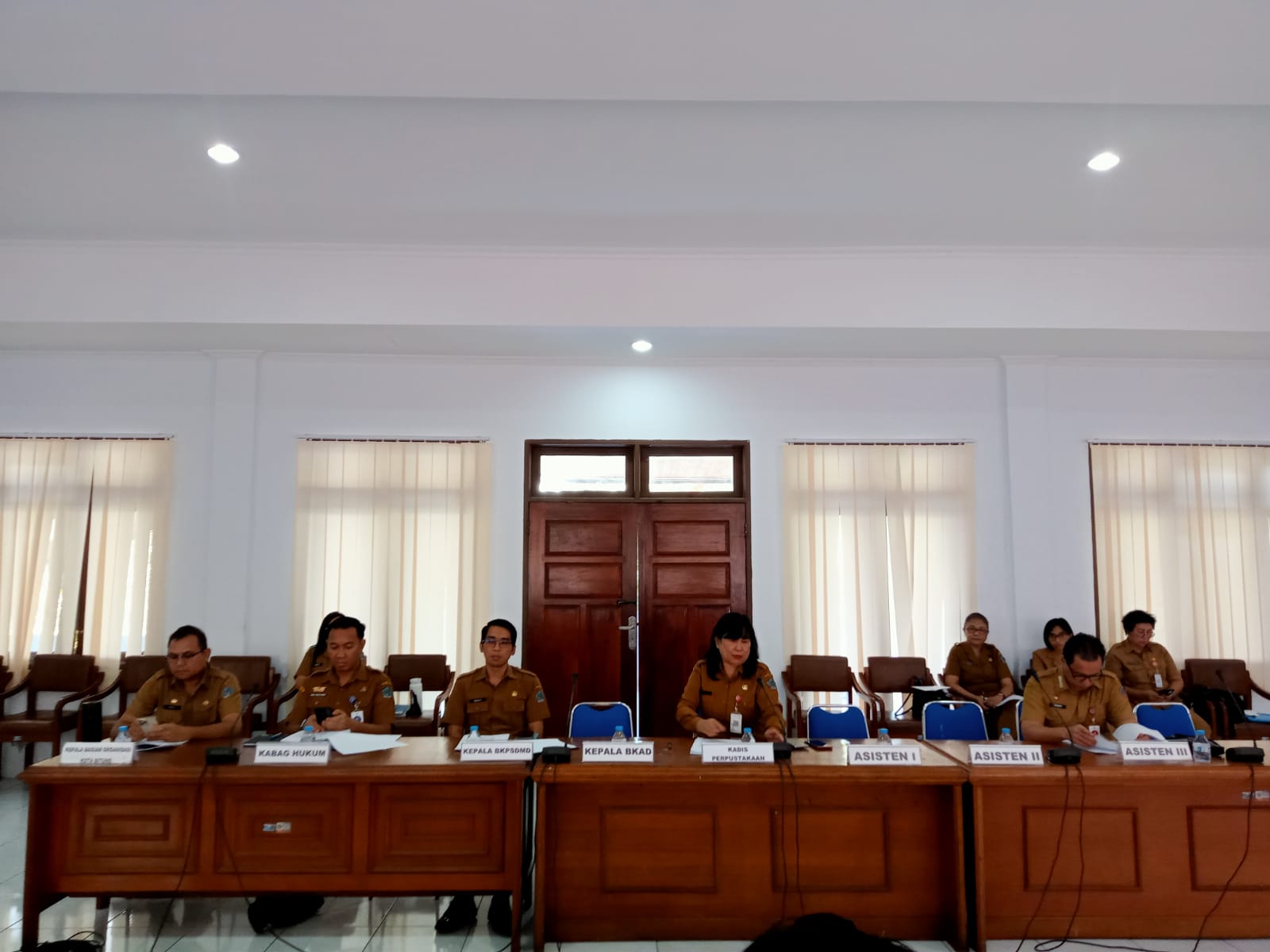Rapat lanjutan pembahasan Pansus dan Pemerintah Kota Bitung terhadap Ranperda Penyelenggaraan Kearsipan yang di hadiri oleh Tim Pansus DPRD, Asisten Administrasi Umum, Kadis Perpustakaan, Kabag Hukum, Kabag Organisasi, dan Sekretaris BKPSDMD.